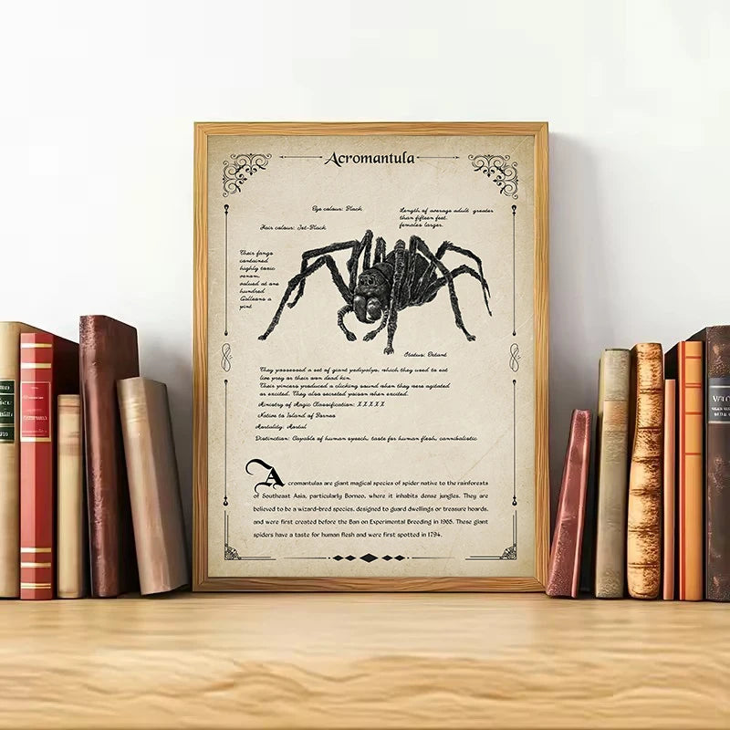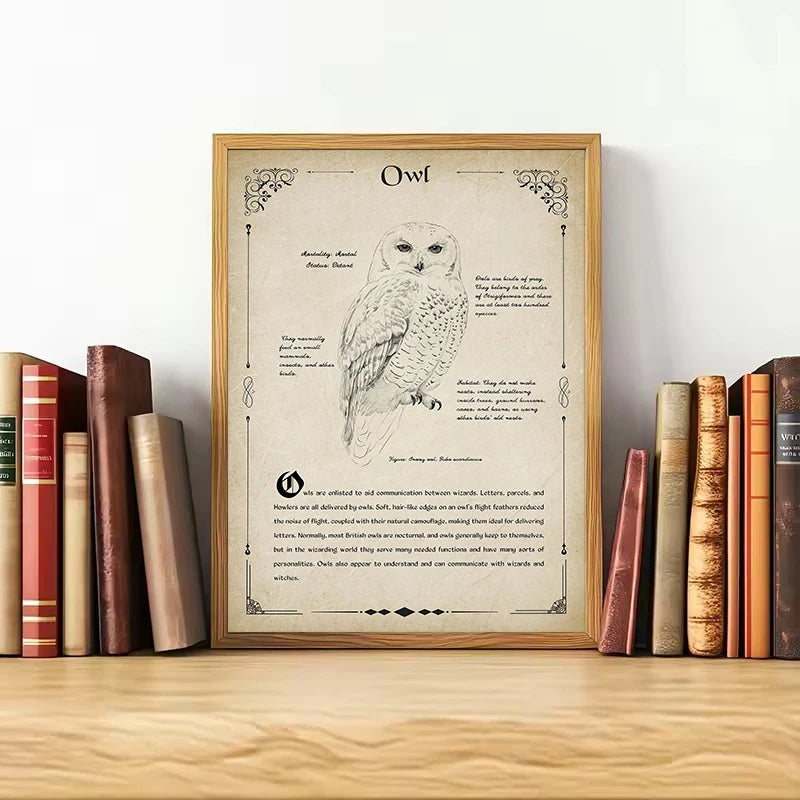 🖼️ Retro Wizard World Magical Creatures Poster – Phoenix, Owl & Beasts
